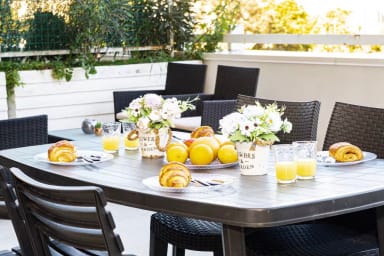 ✔ Two elegant bedrooms, each with a double bed for restful nights ✔ Spacious 50 m² terrace, furnished with a garden lounge – the perfect spot to enjoy the sun or share an outdoor drink ✔ Stylish, functional bathroom, fully equipped for your comfort ✔ Separate WC for added convenience ✔ Fully equipped kitchen, ideal for cooking like a chef and savoring the flavors of Provence ✔ Reversible air condi