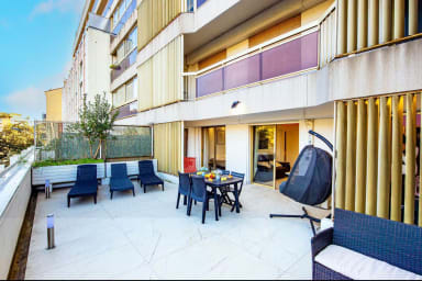 ✔ Deux chambres élégantes, chacune équipée d’un lit double pour des nuits reposantes ✔ Immense terrasse de 50 m², aménagée avec un salon de jardin – l’endroit parfait pour prendre le soleil ou partager un apéritif en plein air ✔ Salle de bain design, fonctionnelle et soigneusement équipée ✔ WC séparés pour plus de confort ✔ Cuisine entièrement équipée, idéale pour cuisiner comme un chef et savoure